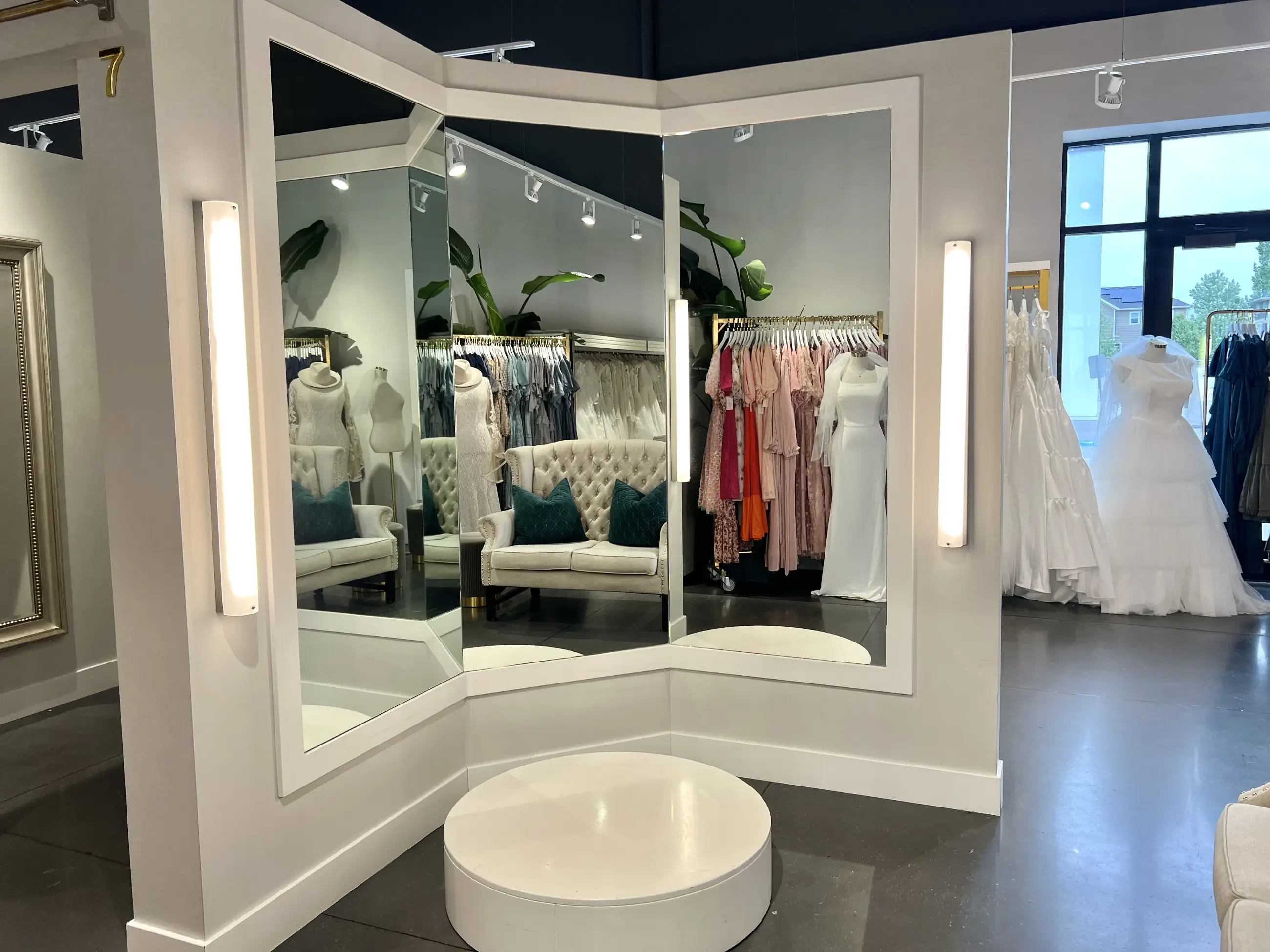 Once your form is complete, you and your party will be invited into the showroom. Your stylist will begin with a personalized consultation, walking through your form and getting to know your vision. This is a key part of your personalized bridal styling experience, where we make sure everything is tailored to you.